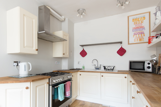 The kitchen is fully equipped with a fridge freezer, gas hob, electric oven, microwave oven, dishwasher, washing machine, kettle, toaster and ample crockery and cutlery.