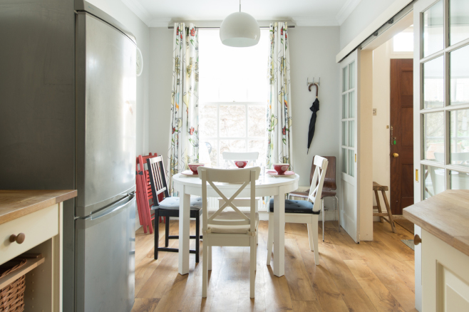 Outside, there is a gravelled courtyard with patio table and chairs where you can enjoy your morning coffee or relax after a day’s sightseeing. There is off-road parking for two average-sized cars in front of the house. The courtyard is shared by the other houses in Battel Mews.